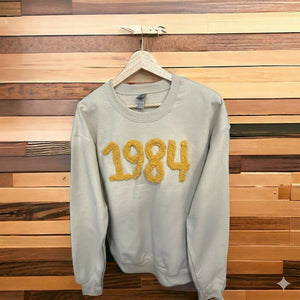 1974 Chenille Yarn Embroidered Sweatshirt | Fuzzy Numbers Crewneck | Custom Year Pullover | Gift for Her