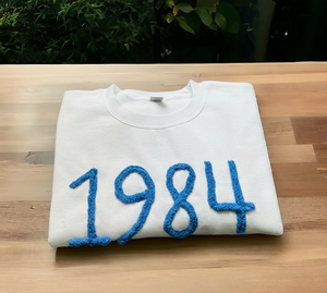 Celebrate your special year in style with our 1974 Chenille Yarn Embroidered Sweatshirt. Designed with soft, fuzzy chenille numbers stitched onto a cozy crewneck, this sweatshirt adds a personalized, nostalgic touch to your wardrobe.