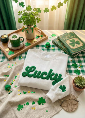 Bring luck, style, and personal charm to St. Patrick’s Day with our 2026 Lucky Chenille Embroidered Sweatshirt — a cozy and festive crewneck perfect for celebrating the Irish spirit! Featuring a beautifully embroidered shamrock and customizable name detail, this unique sweater makes an unforgettable gift for her, ideal for parades, parties, and everyday wear.