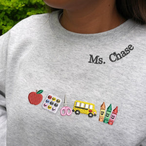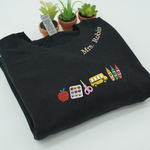 Apple Teacher With Name Embroidered Sweatshirt | Back To School Teacher Sweatshirt | Embroidered Classroom Shirt | Gift for Teacher