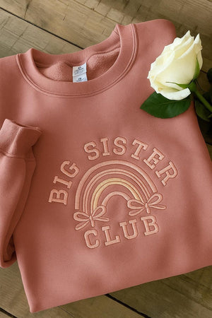 Celebrate sisterhood and share the joy of new beginnings with our Big Sister Club Embroidered Sweatshirt — a cozy, adorable piece perfect for sibling announcements, baby showers, birthdays, or everyday wear.