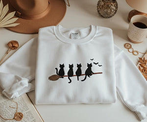 Unique embroidered ghost-black-cat design: perfect for the spooky season and vintage Halloween vibes