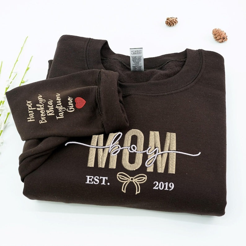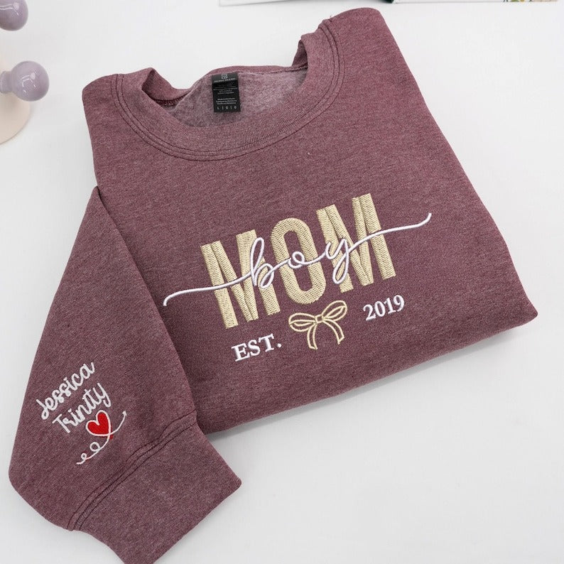 Boy Mom Embroidered Sweatshirt: New Mom Gift