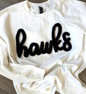 Chenille Embroidered Hawks Sweatshirt - Oversized Mascot Pullover