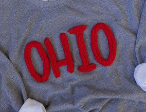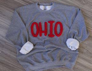 Chenille Embroidered Ohio Sweatshirt - Oversized Pullover
