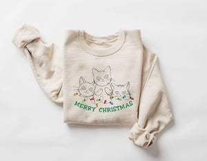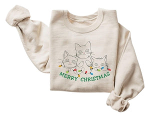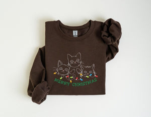 Christmas Cats Embroidered Sweatshirt, Holiday Apparel, Holiday Sweatshirt, Cozy Christmas Embroidery, Christmas Gifts | Embroidered Cats