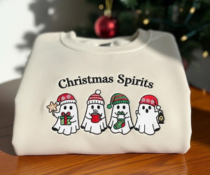 Christmas Spirits Embroidered Sweatshirt, Funny Ghost Christmas Crewneck, Holiday Embroidery Top