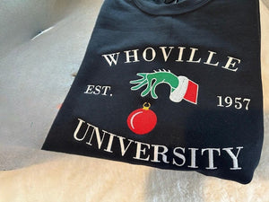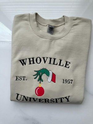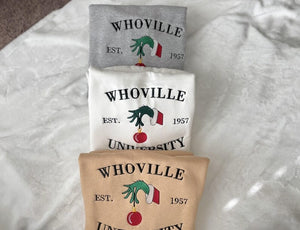 This Embroidered Christmas Sweatshirt is a must-have for anyone who loves the magic, color, and humor of the holidays. Inspired by the classic Whoville charm, this cozy crewneck brings a playful touch to your winter wardrobe.