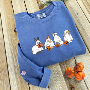 Comfort Color® Embroidered Cute Rabbit Ghost Halloween T-Shirt or Sweatshirt