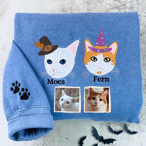 Comfort Colors® Custom Embroidered Cat Portrait from Photo with Halloween Witch Hat T-Shirt or Sweatshirt