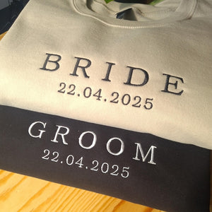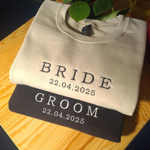 Custom Bride Groom Embroidered Sweatshirt, Personalised Couple Wedding Gift, Custom Bride Jumper, Wedding Date Crewneck, Groom Sweatshirt