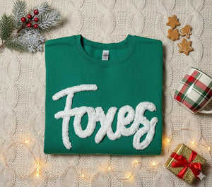 This cozy and stylish sweatshirt features 3D fuzzy chenille letters that give your team name or mascot a bold, soft, and sporty look — perfect for game days, school events, or cheering in the stands.