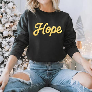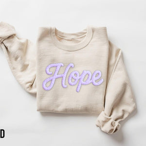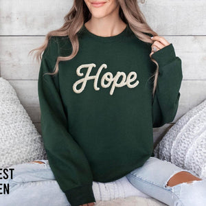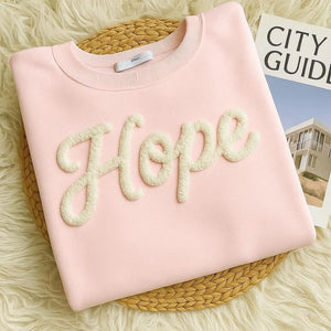 Raised Chenille Yarn Embroidery — The word “Hope” or your custom phrase is stitched in soft, fuzzy chenille yarn for a bold, textured effect