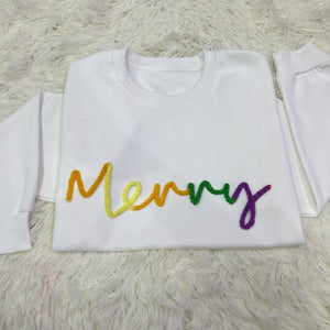 Custom Chenille Yarn Merry Christmas Sweatshirt, Personalized Family Christmas Crewneck, Cozy Unisex Holiday Sweater Gift