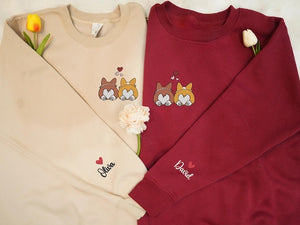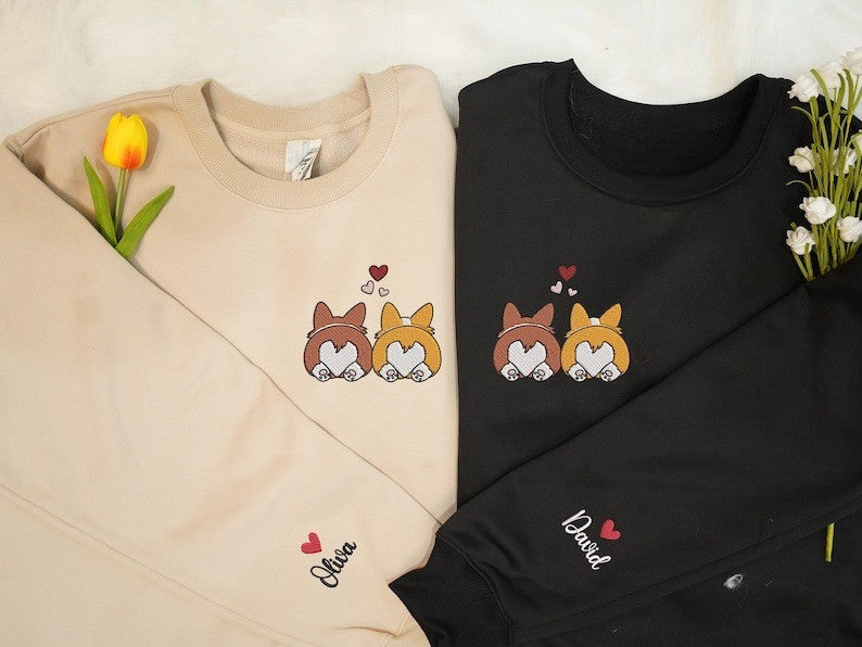 Custom Corgi Butt For Couple Valentine Embroidered Sweatshirt, Matching Sweater, Corgi Mom and Dad Shirt, Valentine Gift For Dog Lover