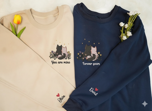 Custom Couple Cat You Are Mine Forever Yours Valentine Embroidered Sweatshirt, Matching Couple Sweater, Valentine For Cat Lover, His and Her