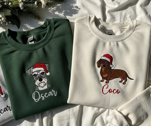 Get into the holiday spirit with our Custom Dog Christmas Sweatshirt, a cozy and personalized sweater that lets you showcase your furry friend in festive style. Just upload your dog’s photo and pet name — we’ll turn it into a beautiful embroidery featuring your pup wearing a Santa hat or holiday motifs.
