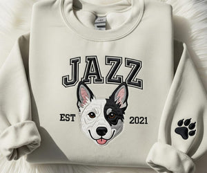 Celebrate your furry friend with our Custom Dog Face Embroidered Sweatshirt. Each sweatshirt is uniquely personalized with your dog’s photo embroidered in high-quality thread, creating a one-of-a-kind keepsake for every pet lover.