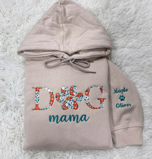 Custom Dog Mama Hoodie with Floral Letters & Paw – Names on Sleeve
