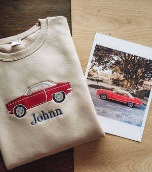 Capture your passion for cars in every stitch with this custom embroidered car sweatshirt — a truly unique keepsake for anyone who loves their ride.