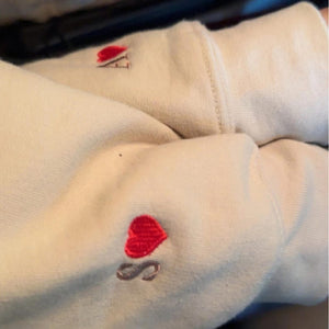 Celebrate your love with a subtle yet meaningful touch through our Custom Embroidered Initial Heart Hoodie on Sleeve. Designed with delicate heart embroidery featuring your chosen initials on the sleeve, this personalized sweatshirt is the perfect blend of minimal style and sentimental value.
