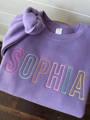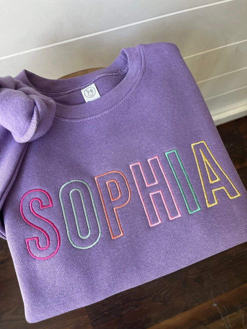 Custom Embroidered Name Sweatshirt - Block Letter Pullover - Personalized - Sweater - Toddler Girls Block Letter - Colorful Girls Sweater -