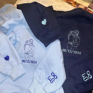 Celebrate love in the most meaningful way with our Custom Embroidered Portrait from Photo Hoodie – a unique and heartfelt personalized gift for couples. Designed to turn your favorite photo into a beautifully stitched minimalist line portrait, this custom embroidered sweatshirt captures your special moment in a timeless, wearable keepsake.