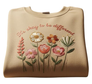 Custom Embroidered Sweatshirt It’s Okay to Be Different Floral Self Love Positive Quote Cozy Kindness Pullover Gift