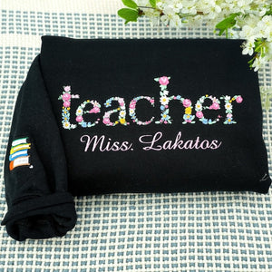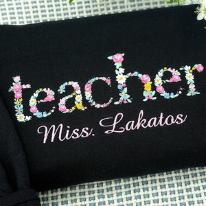 Custom Floral Teacher Sweatshirt - Personalized Embroidered Teacher Crewneck With Name - Proud Teacher - Teacher Appreciation, Sister Gift