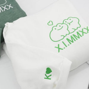 Celebrate your love story in the cutest way with our Custom Frog Couple Embroidered Hoodie, featuring adorable frog characters, personalized initials, and a meaningful Roman numeral date. This unique matching hoodie set is the perfect keepsake for anniversaries, Valentine’s Day, weddings, or just because.