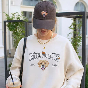 Custom Halloween Embroidered Dog Face Sweatshirt with Dog Portrait and Est Year, Personalized Dog Mom Gifts