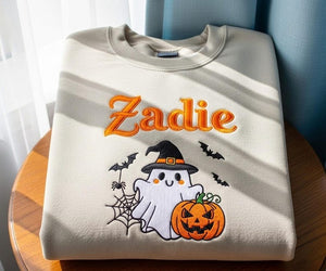 Custom Kids Name Halloween Name Embroidered SweatShirt, Toddler Boy Girl Halloween Shirt, Custom Name Pumpkin Shirt