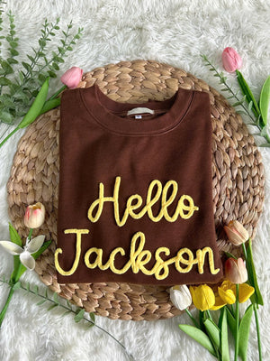 Show your school pride in style with this custom chenille yarn embroidered sweatshirt. Perfect for high school sports teams, cheer squads, and spirit wear, each sweatshirt features a bold chenille patch with your team name or mascot.