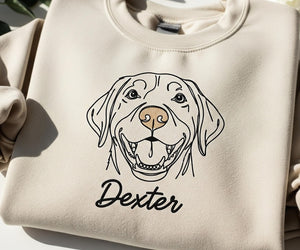 Keep your furry friends close with this Custom Pet Embroidered Sweatshirt, beautifully personalized from your photo! Each sweatshirt features a hand-drawn digital outline of your dog or cat, then carefully stitched into a soft, high-quality crewneck. It’s the perfect gift for pet owners, dog moms, cat lovers, or anyone who wants to wear their pets with pride. Cozy, durable, and one-of-a-kind — this embroidered pet portrait sweater is made just for you.