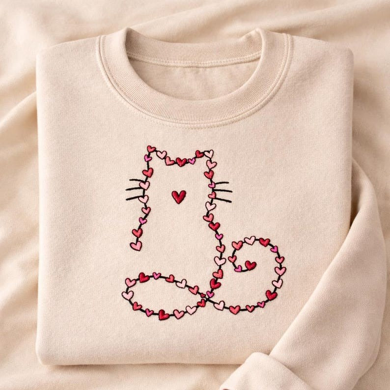 Celebrate your love for cats and Valentine’s Day with this adorable Cute Cat Hearts Valentines Embroidered Sweatshirt — a must-have piece for every cat mom, girl, or animal lover. Designed with playful embroidered cat and heart motifs, this charming sweatshirt blends sweet style with everyday comfort. Perfect as a Valentines Day gift, girls’ sweater, or “Meowentine” outfit this season.