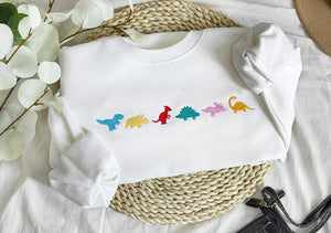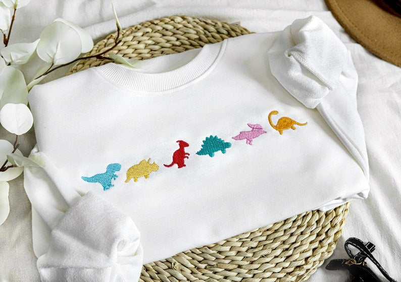 Cute Embroidered Dino Family Crewneck Sweatshirt,Adult dinosaur shirt,Dino gift, Best gifts for her