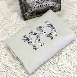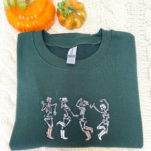 Dancing Skeletons Sweatshirt, Halloween Crewneck Embroidered