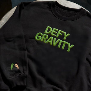 Step into the magic of Wicked and celebrate the spirit of empowerment with our Defy Gravity Chenille Yarn Embroidered Sweatshirt. This beautifully crafted crewneck is designed for fans of Elphaba, Glinda, and the unforgettable message of “Changed For Good.” With its plush chenille yarn letters and premium embroidery, this sweatshirt combines cozy comfort with a touch of theatrical flair — perfect for the holiday season or any day you want to feel inspired.
