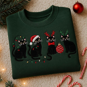 Get festive and cozy this holiday season with our Embroidered Black Cat Christmas Sweatshirt — the ultimate Christmas gift for cat lovers, cat owners, or anyone who enjoys a cute & quirky holiday style.
