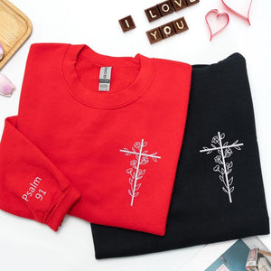 Embroidered Christian Cross Sweatshirt: Custom Bibble Verse on The Sleeve, Matching Couple Sweater, Christian Gift