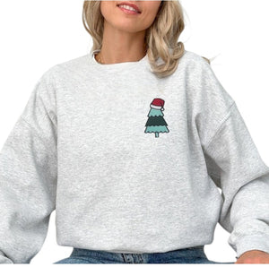 Embroidered Christmas Tree Sweatshirt, Holiday Crewneck Sweater