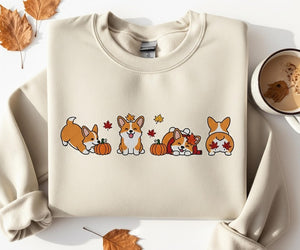 Embroidered Corgi Fall Sweatshirt Cute Dog Mom Gift Autumn Leaves Ghost Halloween Crewneck Cozy Pet Lover Shirt Funny Corgi Owner Tee