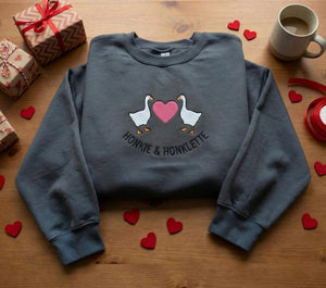 Add some humor and heartfelt connection to your couple wardrobe with our Embroidered Honkie and Honklette Sweatshirts — a quirky, cozy matching set inspired by playful goose designs. Whether you’re celebrating Valentine’s Day, an anniversary, birthday, or just showing your partner how much you hon-k they mean to you, this couple hoodie set blends adorable style and embroidered detail into one unforgettable gift.
