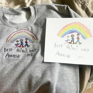 Whether it’s a stick-figure family portrait, a heart drawing, or a sweet handwritten note, this personalized embroidered sweatshirt preserves those special childhood memories in a wearable form.