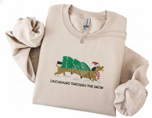 Embroidered Dachshund Christmas Sweatshirt – “Dachshund Through The Snow” Holiday Mom Crewneck