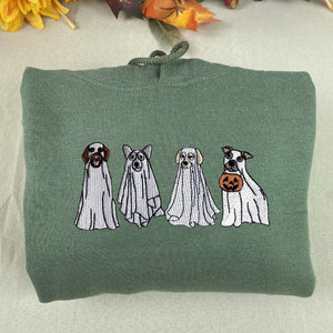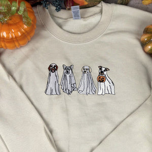 Cute Ghost Dog Halloween Sweatshirt Embroidered, Dog Lovers Crewneck or Hoodie