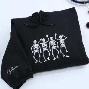 Get into the Halloween spirit with this Embroidered Dancing Skeletons Sweatshirt — where style meets spook!