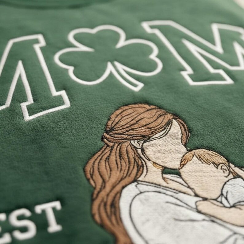 Custom Family Photo Embroidery • Mama EST. Year • Mother’s Day & St. Patrick’s Day Gift