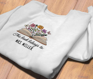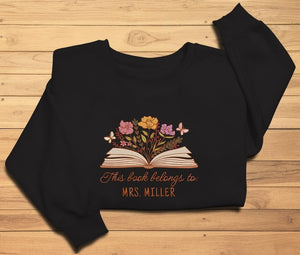 Embroidered Floral This Book Belongs To Sweatshirt, Custom Book Club Shirt, Personalized Bookish Sweater, Reading Lover Sweater,Reading Crew