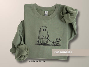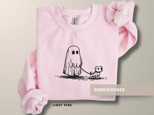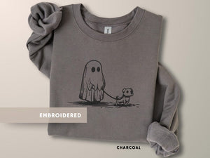 Embroidered Ghost Dog Sweatshirt Cozy Halloween Pullover Dog Lover Gift